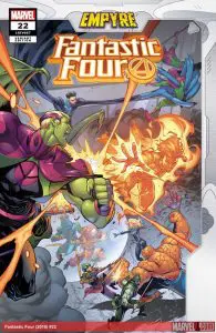 N THE NEAR FUTURE…DOOM ALONE MUST SAVE THE MARVEL UNIVERSE! Legendary creators Jonathan Hickman (ULTIMATE SPIDER-MAN, G.O.D.S.) and Sanford Greene (Bitter Root) send Doctor Doom on a journey unlike any he has undertaken before! With Valeria Richards at his side, Doom goes on a quest to harness more power than any human has ever wielded before in order to try to stop Galactus from bringing about the death of the universe!
