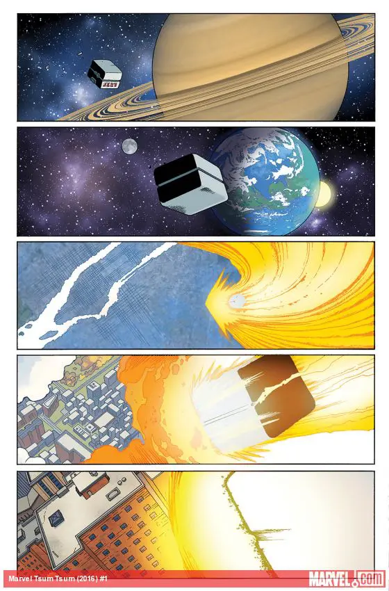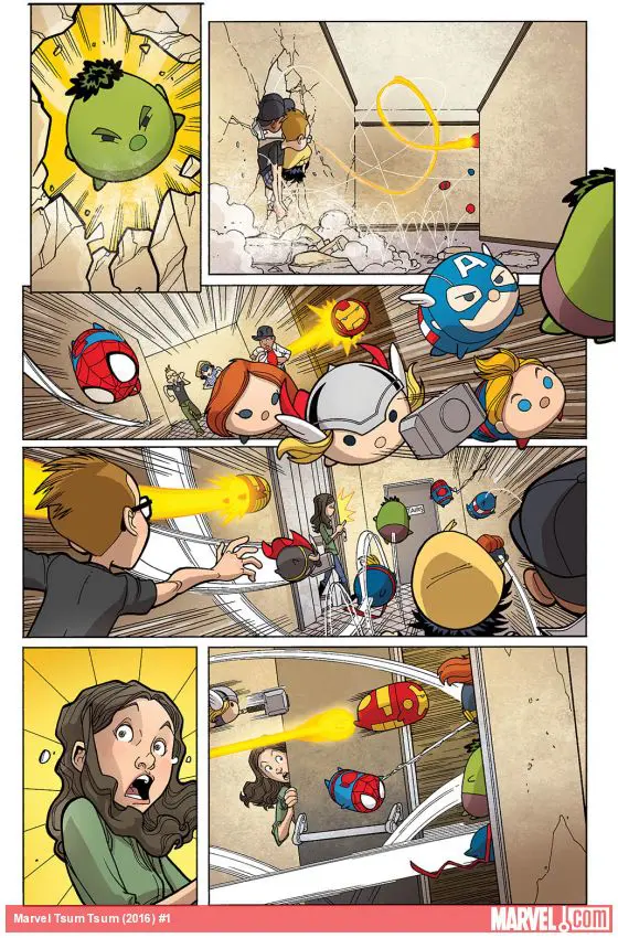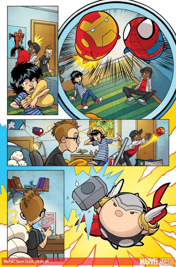 In case you've been living under a rock, Tsum Tsums are HUGE! Well, not LITERALLY (they're actually pretty tiny) but these seemingly cute and cuddly creatures are sweeping the globe! So what happens when these pint-sized piles of fur find their way into the Marvel Universe? After a crate of them falls to Earth en route to THE COLLECTOR, one small group of Brooklyn teenagers will find out! Featuring all of your favorite Marvel heroes and villains, this is sure to be TSUM-thing you won't want to miss!