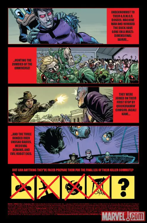 Machine Man is poised to collect the last zombie sample needed to create a cure, but it's in the most horrifying universe of all... ours! With ARMOR agents hot on his heels, has our intrepid zombie-hunter bagged his last brain-muncher?