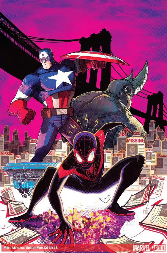 CAPTAIN AMERICA guest-stars! Miles and Cap try to get to the bottom of the mystery of the missing kids, but it's not quite that simple. A new villain has our heroes' number, and you won't believe how they get out of this jam!