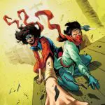 Don't miss Jersey's newest crime fighter in this all-new arc! Shouldering the burden of saving Jersey City has felt especially heavy for Kamala Khan since her falling out with her lifelong best friend and pseudo sidekick, Bruno… Still, J.C. has always been her turf… So when a new hero moves into J.C., Kamala's left conflicted…