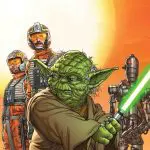 THE ORIGINAL STAR WARS TRILOGY! Move over, Boba Fett. The most dangerous bounty hunter in the galaxy isn’t who you think. The cold, calculating assassin droid IG-88 had a deadly reputation. Wanted criminals should tremble in fear because IG-88 will stop at nothing to get the job done. But where did it come from? What does it want? Perfection might be a good place to start. SI SPURRIER (DOCTOR APHRA) and CASPAR WIJNGAARD (DOCTOR APHRA ANNUAL) bring the terrifying droid to life! The destruction of the Order, the death of his friends, exile — no matter what he has endured, YODA will always be a Jedi. Even in hiding on the isolated planet of Dagobah, far from the evil Empire’s reach, a Jedi’s work is never done. Marc Guggenheim (X-MEN GOLD) and ANDREA BROCCARDO (STAR WARS) will pay the wise, old master a visit! The freedom-fighting REBEL ALLIANCE has more than its fair share of heroes — like ace pilots BIGGS DARKLIGHTER and JEK PORKINS. But they’ve been fighting the evil Galactic Empire for a long time and sometimes, even noble warriors like Biggs and Porkins need a little rest and relaxation. Is anywhere truly free from the trials of the galactic conflict?