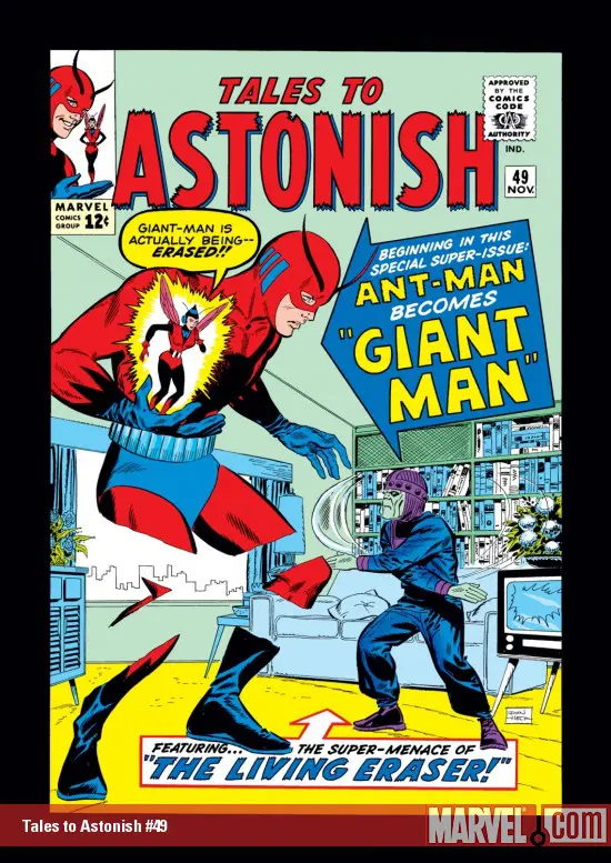 Hank Pym becomes Giant-Man for the very first time! Hank discovers a way to reverse the shrinking properties of the Pym particles. And just in time too- Wasp and Giant-Man must take down the Eraser, a villain who can quite literally wipe you out of existence!
