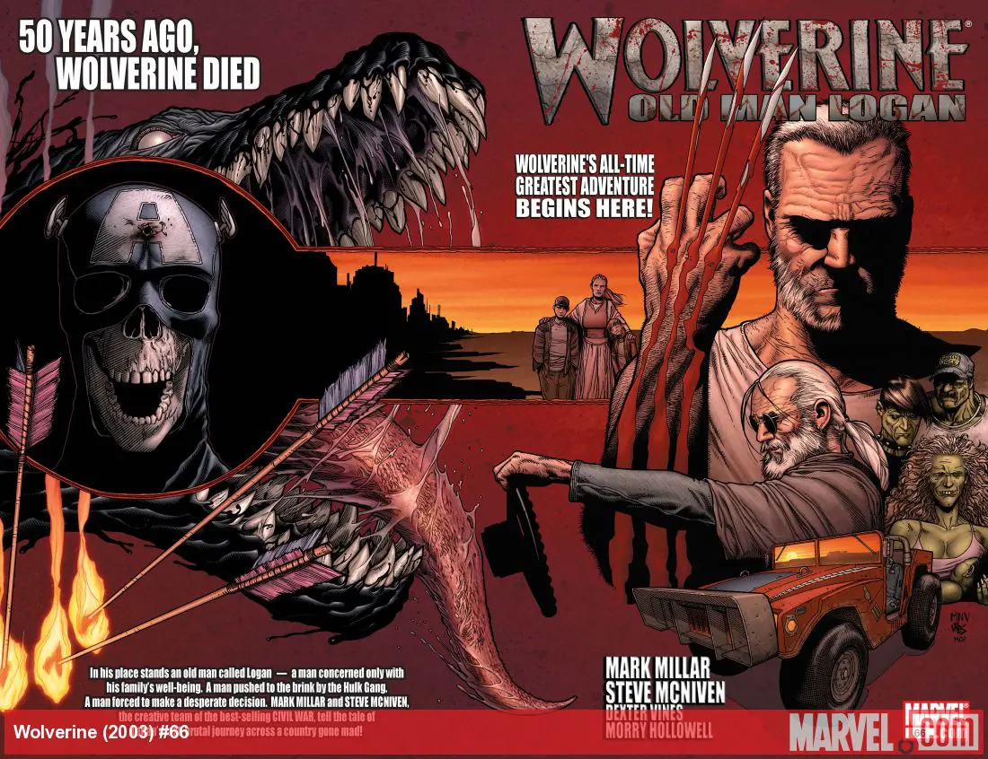 The First Appearance of Old Man Logan! Mark Millar and Steve McNiven (CIVIL WAR) bring us the most important WOLVERINE story of the 21st Century. Nobody knows what happened the night the heroes fell. What happened to Wolverine is the biggest mystery.